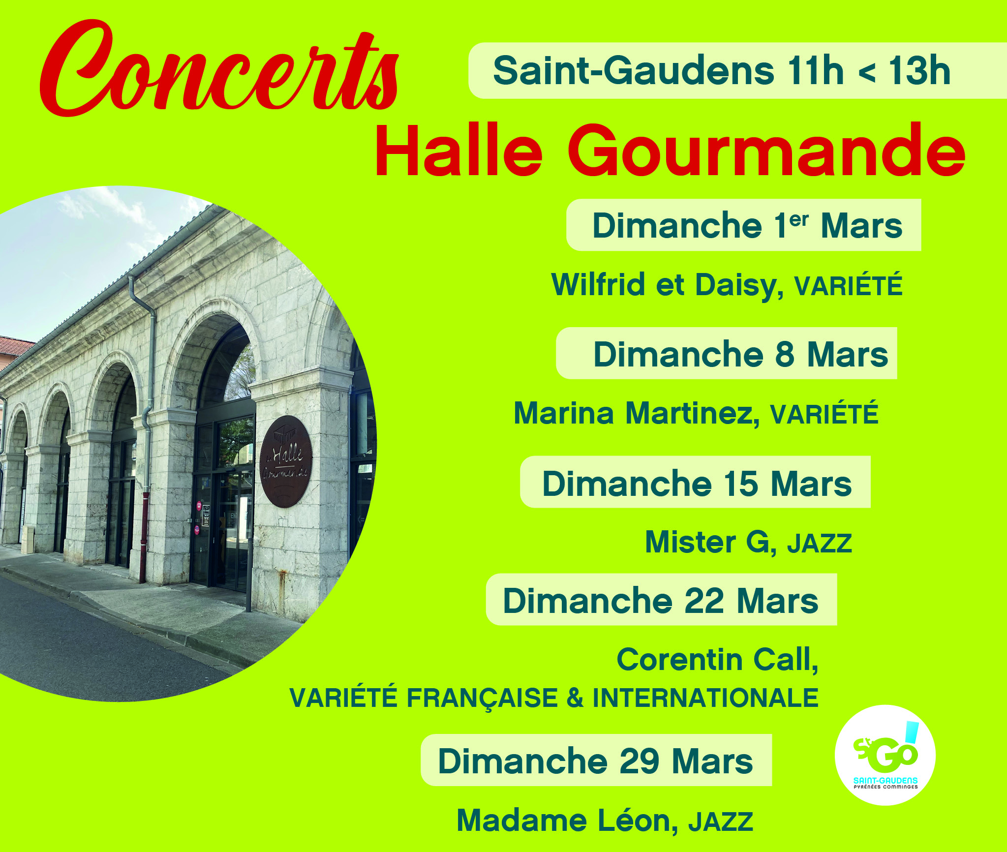 ANIMATIONS MUSICALES : Concerts Halle Gourmande