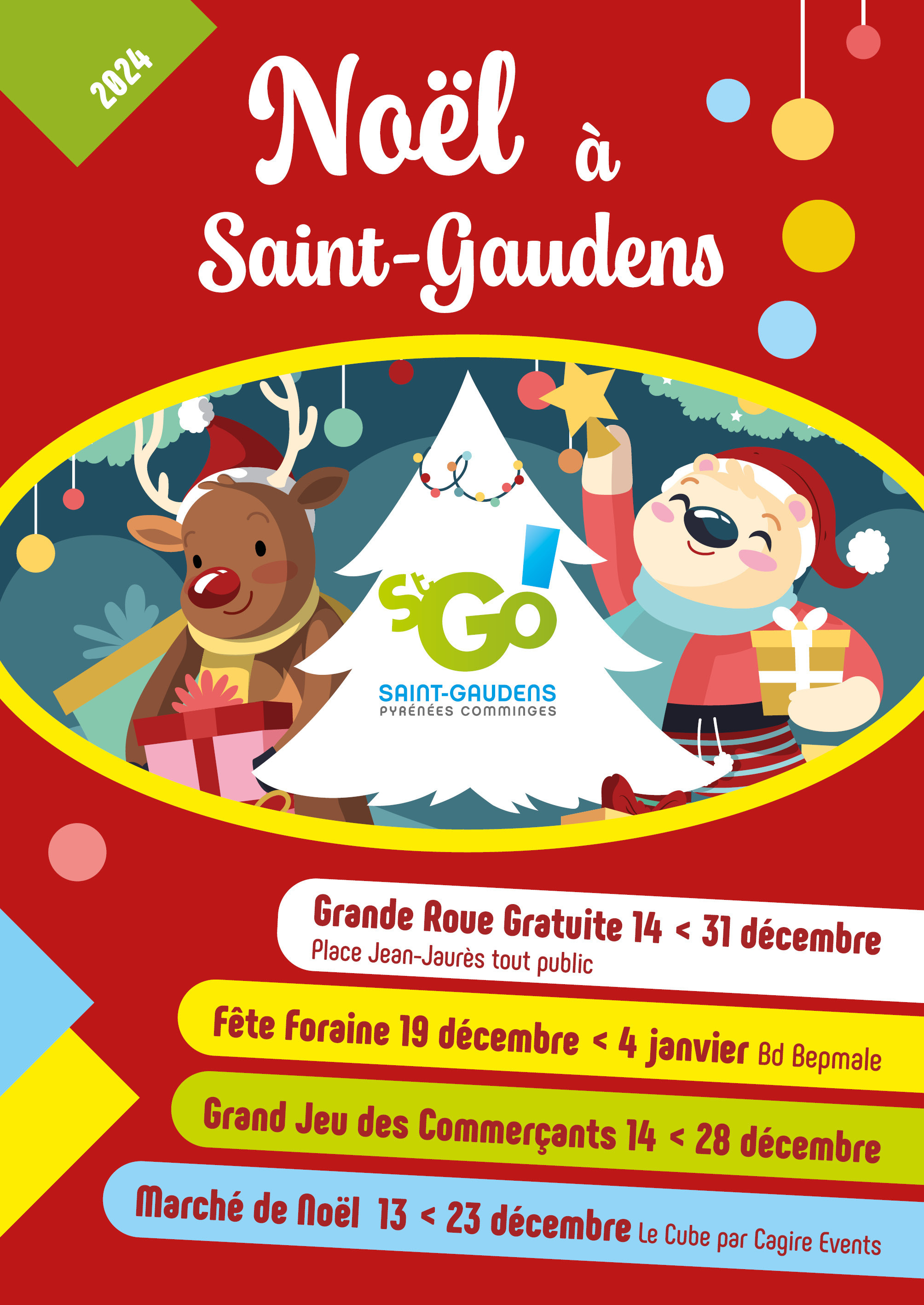 Du 14 décembre 2024 au 4 janvier 2025, la ville s’illumine. Plongez dans une ambiance féerique grâce à une multitude d’animations pour petits et grands :